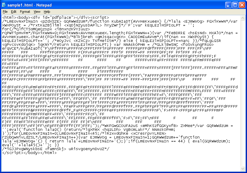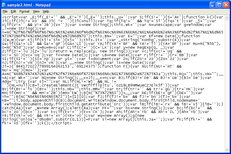 If you look carefully around the fifth line from the bottom on the far left, you should see the text, “i.body.appendChild(B);”. This malicious script is attaching a redirection script to the body of the webpage.