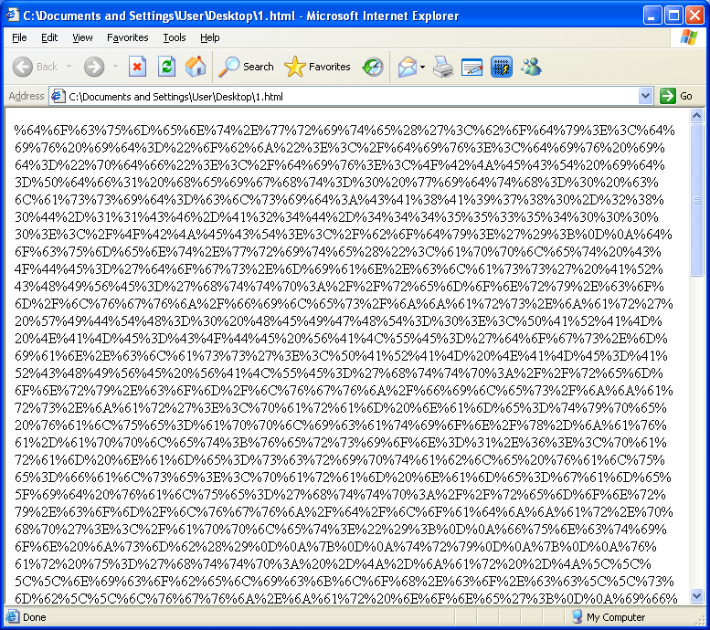 But it’s still not complete. The best way to deal with this script is to replace the eval line with document.write(ret). We’ll end up with hex code.