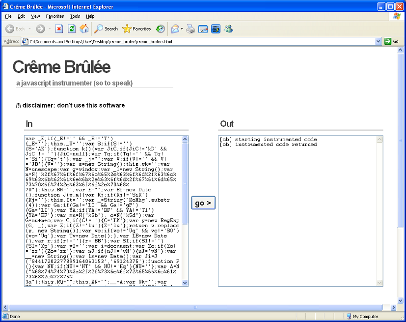 This tool has a lot of potential. If the startup time was reduced and the output size increased, this would be on par with IE8 Developer Tools and Script Debugger in terms of results but easier to use because you don’t have to worry about breakpoints. The C++ source code is available so if anyone wants to make a new version, I’d love to do more testing.