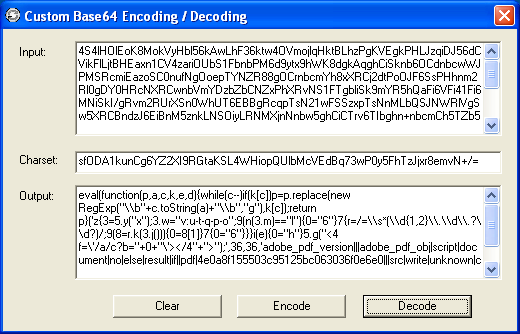I quickly wrote a program that can encode and decode using custom alphabets. If I paste the values from the script over to the program, we can obtain the same results when I did the manual deobfuscation: