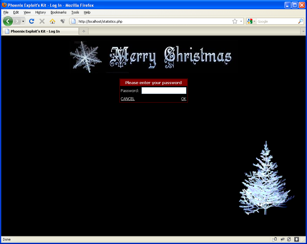 Back in 2008, Dancho Danchev blogged about a Christmas-themed attack toolkit. This exploit pack was offered with three different types of licenses: Basic, Standard, and Professional with the latter enabling access to all of the exploits. A couple of years later, the author(s) appeared to have refreshed its available exploits.