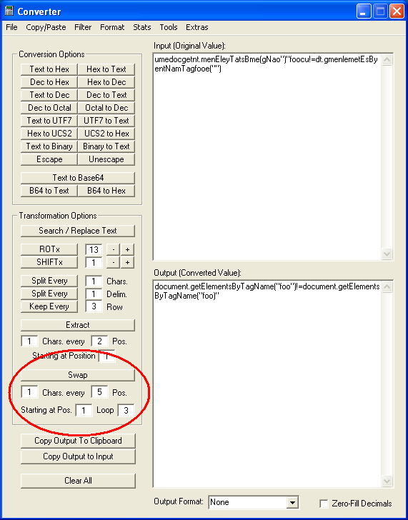 I’m sure you’ve seen obfuscated Javascript that uses an algorithm that swaps characters around. You can actually deobfuscate some scripts by reversing the swaps or increasing the number of times it loops.