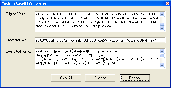 Added the ability to convert text to Base64 using a custom character set (and vice versa). Requirement is that the character set needs to contain exactly 65 characters.
