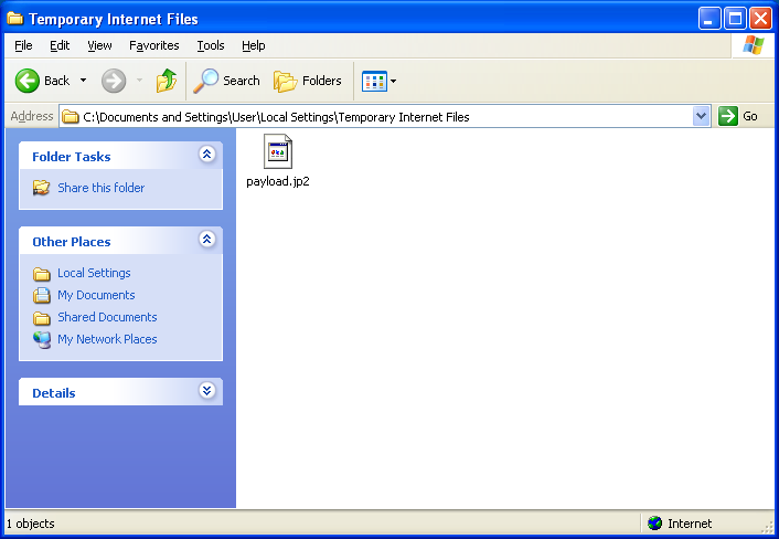 When the payload file gets cached, you can see it in the “Temporary Internet Files” folder.