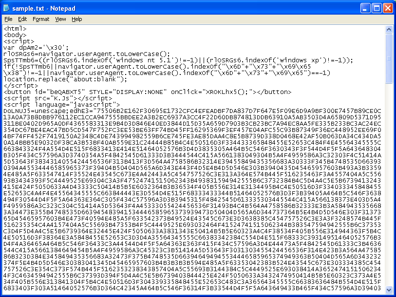 A key part of this exploit code is held in a separate Javascript file. The code sets up the NOP sled.
