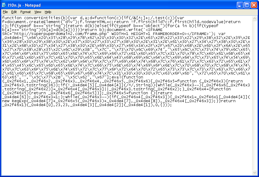 The external Javascript file has obfuscated code: