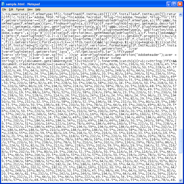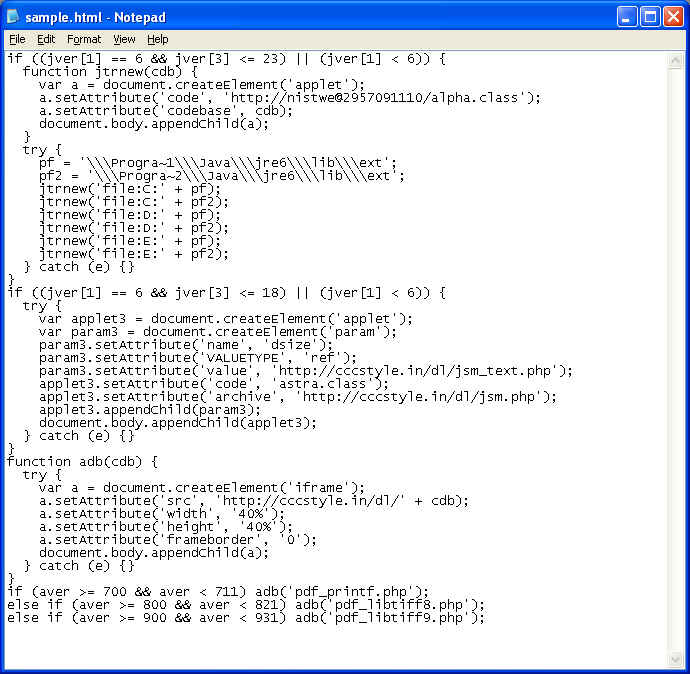 You can see that it deploys the typical cocktail of Java and PDF exploits. If anyone knows the name of this new pack, please let me know.