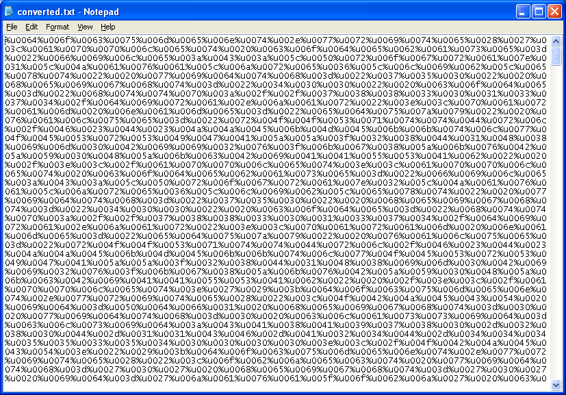 Click on the “UCS2 to Hex” button then the “Hex to File” button and save the file. You will end up with this: