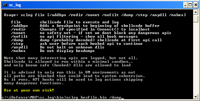 Another favorite tool I like to use is “sclog” from David Zimmer which dumps and hopefully decodes the shellcode. Just enter the following command: