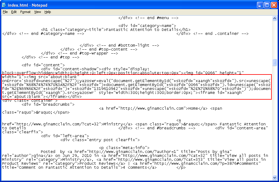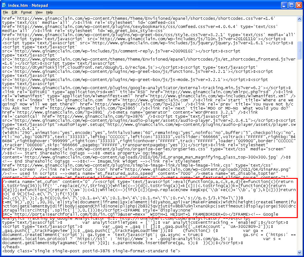 It’s bad enough to get hit with one drive-by download…but two on one page?! It’s probably separate compromises made by two different people. One thing is for sure though…what’s common to all these websites is WordPress. Let’s take a look at the first drive-by. Here are some of the affected websites: