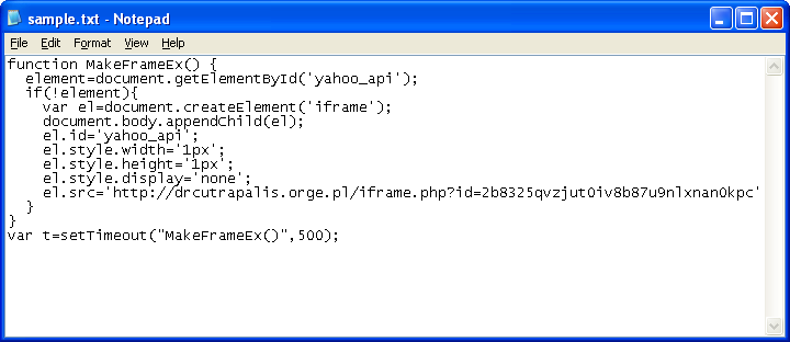 Here’s what the above Javascript looks like when it’s decompressed. Other domains being used all seem to begin with “dr”.