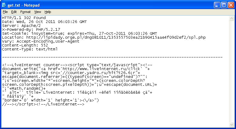 When this page is called, it keeps track of the visitors and then does a 302 redirect to a malicious site.
