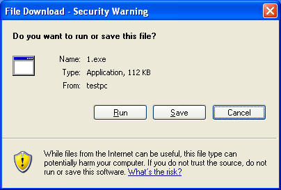 Looks like the file attempts to download via Internet Explorer but gets blocked. If I try to execute a local EXE file, then it runs without any warning.
