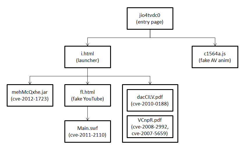 This pack can be primarily found on the kein.hk domain so let’s call this the “Kein Exploit Pack”. Here are the parts of this pack that we’ll be analyzing. As you can see, the majority of the exploits used in this pack is outdated but they have little AV coverage.