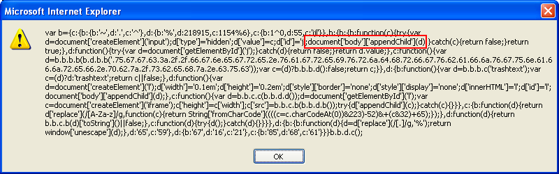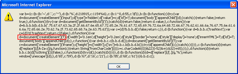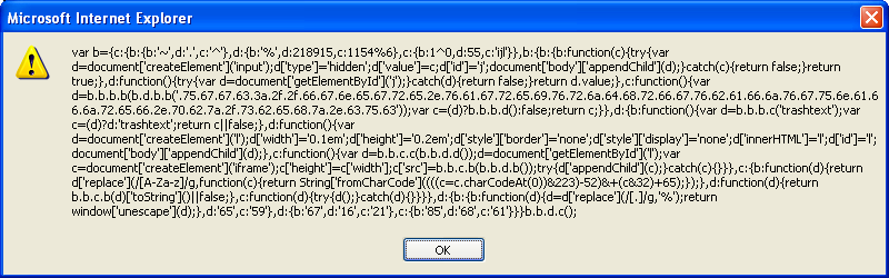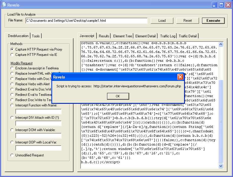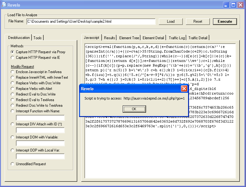 I just wrapped the code with “alert(unescape(” and looked at the result. Keep in mind when you do something like this, there may be some unintended consequences. If I paste the result back to Revelo, the script won’t run correctly as something broke. All we’re doing here is trying to understand what the script is doing. By the way, you can do a control-a then control-c to select-all and copy the messagebox contents.