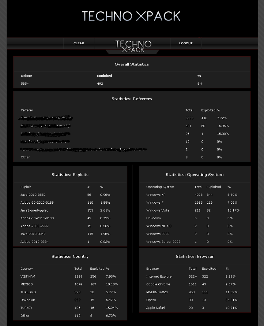There’s another new exploit pack in town called Techno XPack. This one looks like a re-skinned BleedingLife. Here’s a list of the exploits it’s packing: