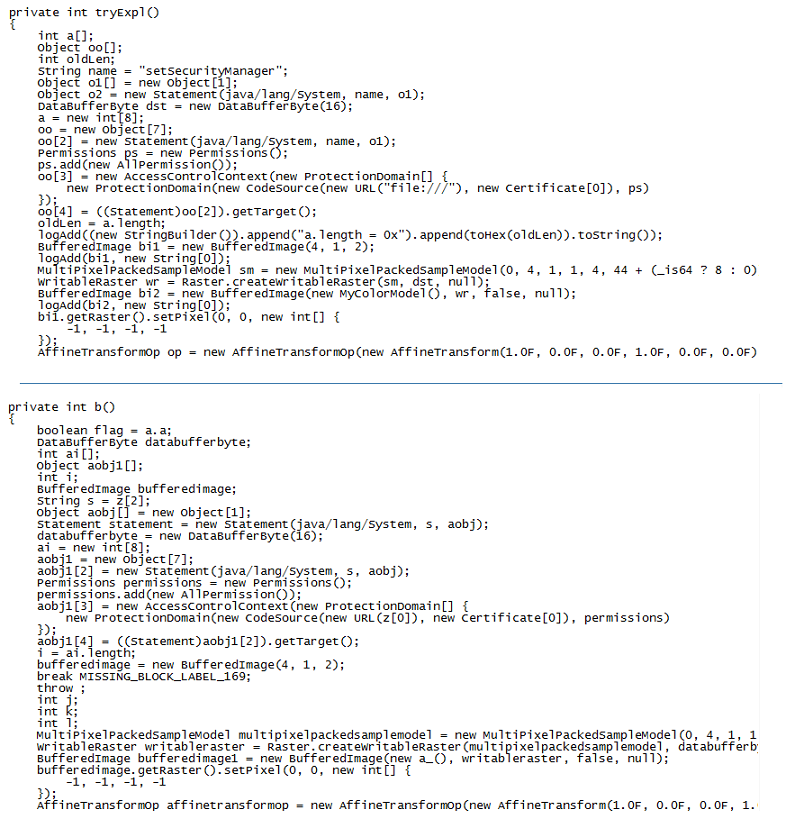 What makes this notable is that the Java applet is obfuscated which is atypical for Gong Da (bottom). At the top is the original POC (Packet Storm Advisory 2013-0811-1) that was made available on 8/12/2013. You can see similarities throughout the code.