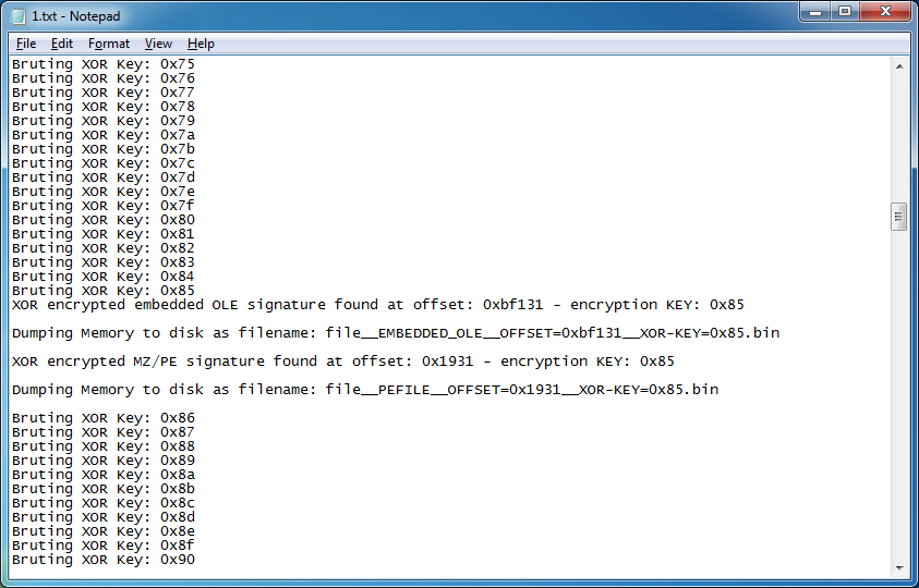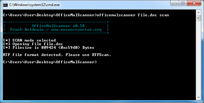 Now let’s run OfficeMalScanner on this modified file using its scan and brute options…and hope this actually works. Great it does!