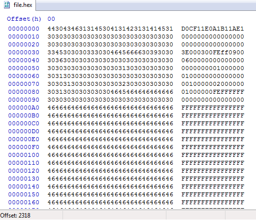 Let’s have a look at the original Word file again. This time we notice the magic for Word in hexcode.