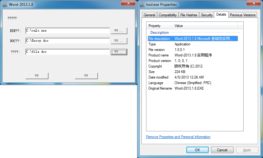 In a recent spearphish campaign, a malicious Word document was used to infect the email recipient. I was able to find an interesting tool and used it to recreate the Word document. Before we get to that, let’s do a quick analysis on the document…