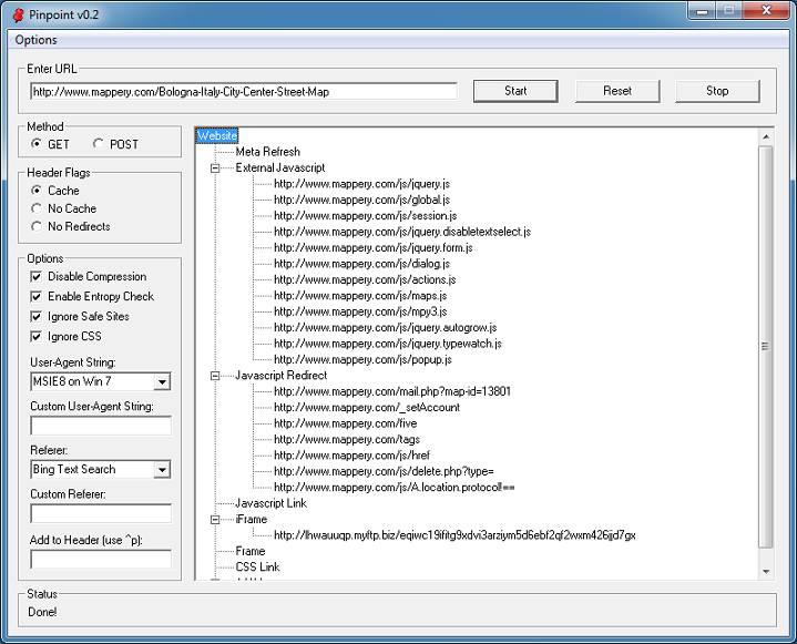 What I have been doing lately is documenting these redirection methods so that I can program Pinpoint to look for these methods when it analyzes webpages. I believe it’s useful to identify these methods so that you can tell if it’s an Infinity EK (aka RedKit, GoonKit), ramayana EK (aka DotkaChef), DarkLeech, or another type of website infection.