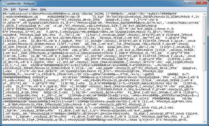 This is a VBScript Encoded file (VBE) that starts off the fraud: