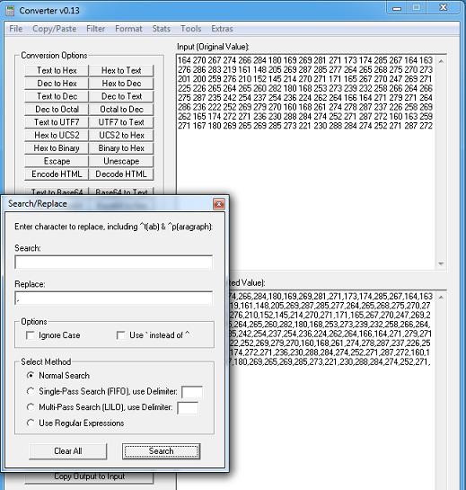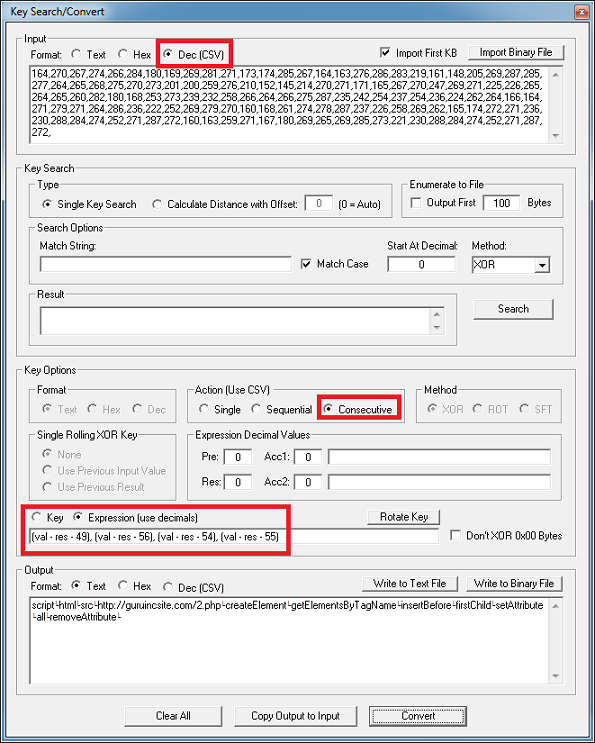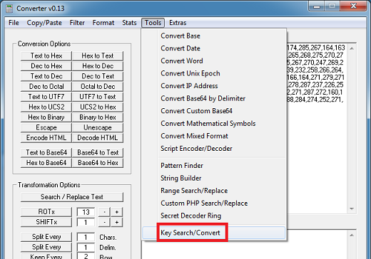 Next, I click on the “Copy Output to Input” button then on Tools > Key Search/Convert.